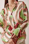 V Yaka Desenli Saten Gömlek Mint