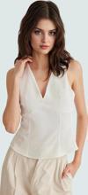 Polyester malzemenin dayanıklılığı ve kolay bakımı, uzun süreli kullanım sağlar. V yaka detayı yüzünüzü daha belirgin hale getirirken, kolsuz tasarımı sıcak yaz günlerinde serin kalmanıza yardımcı olur. Slim fit kalıp vücut hatlarınızı zarifçe ortaya koyarken, krep kumaşın yumuşak dokusu ise gün boyu konfor sunar. Cepsiz tasarımı minimal ve şık bir görünüm sağlar. Regular boyu ise tüm vücut tipleri için uygundur.