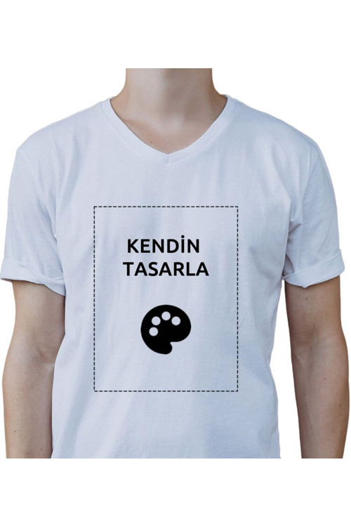V Yaka Tişört Kişiye Özel Baskı Resim Baskılı T-Shirt