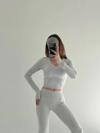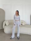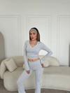 V Yaka Uzun Kollu Bluz İspanyol Paçalı Tayt İkili Takım - Gri