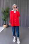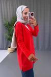 Ka Hijab V Yaka Yandan Yırtmaçlı Merserize Hırka - Kırmızı