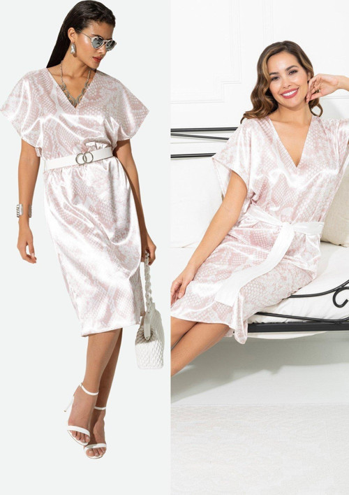 Bu saten takımımız, çok şık bir kemer ve desenli sabahlığın uyumlu birlikteliğinden oluşuyor.