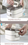 Vagonlife 1000 ML İki Kat Üç Bölme Paslanmaz Çelik Bento Lunch Box Yeni Nesil Sefer Tası-Sos Kaseli Mode