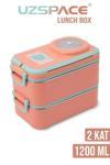 Vagonlife 8023 1200ml 2 Katlı 4 Bölmeli Mercan Çelik Saklama Kabı