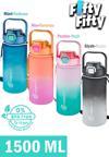Tritan 1500ml Askılı-Pipetli/Pipetsiz Kullanım Çift Renk SoftTouch Motivasyon Matarası Çıkartma Hediyeli