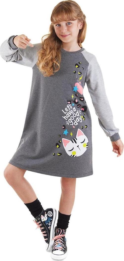 Orta kalın, pamuklu kumaştan, reglan, uzun kollu, antresit melanj elbise. Üzeri kedi baskılıdır. A kesimdir. Elbisenin kombin sneakers'ını da satın alarak takımı tamamlayabilirsiniz. Tüm MSHB&G ürünleri çocuk güvenliği düşünülerek üretilmiştir ve iğne dedektörlerinden geçirilmiştir.