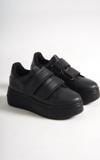 VALENCIA Bağcıksız Cırt Cırtlı Ortopedik Taban Kadın Sneaker Spor Ayakkabı CST - Siyah
