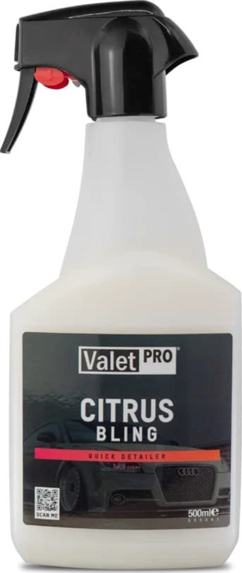 Valet Pro Citrus Bling, araç bakımında çok yönlü kullanım imkânı sunan parlatıcı ve temizleyicidir. Su bazlı formülü sayesinde hem hızlı cila hem de kurulamaya katkı, hızlı temizlik, cam temizleme, kil kayganlaştırıcı ve boya koruma öncesi temizlik görevlerini güvenle yerine getirir. Citrus Bling, aracınızın yüzeyinde derinlemesine parlaklık sağlayarak, günlük bakım ve detaylı temizlik işlemlerini kolaylaştırır.
