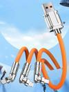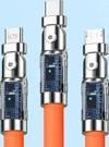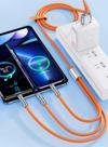 Valkyrie 120W-E 6A 3in1 Apple Type-C Android 180 Derece Sıvı Silikon Data Hızlı Şarj Kablosu - Bakır Döşeme - Katlanmaz