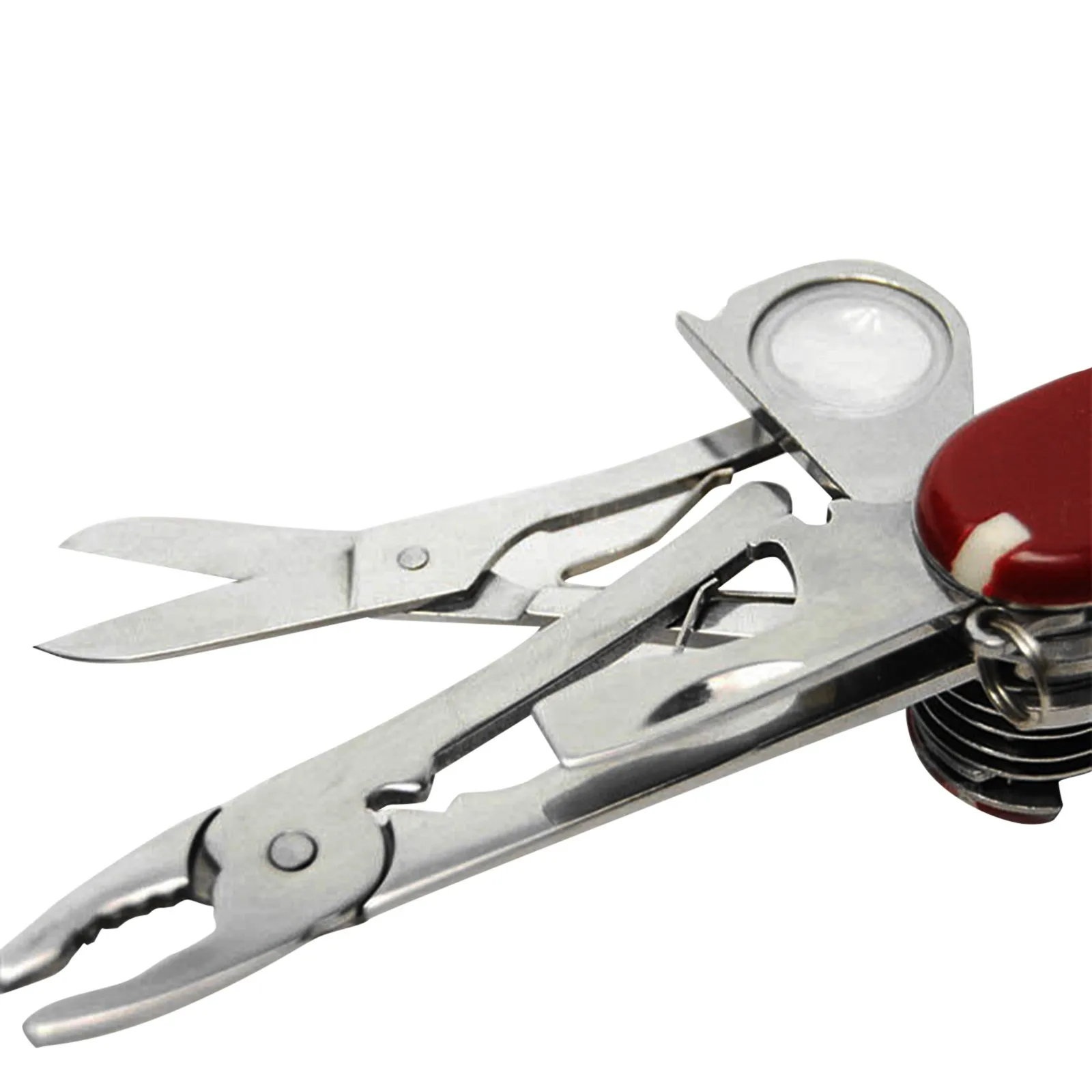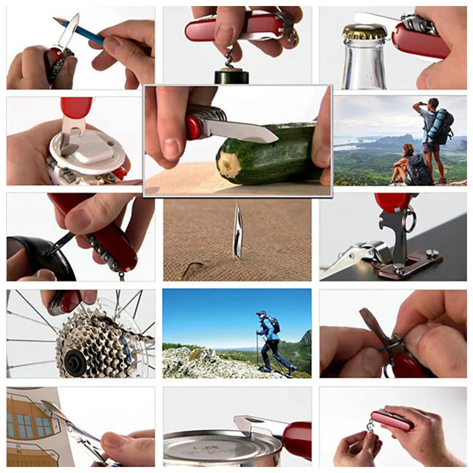 1. Bıçak (6cm) 2. Testere 3. Balık Pulu Soyucu 4. Balık İğnesi Tutucu 5. Makas 6. Anahtarlık Halkası 7. Tornavida Ucu (yıldız) 8. Tornavida Ucu (düz) 9. Törpü 10. Kontrol Halkası 11. Tırbişon 12. Gazoz Açacağı 13. Konserve Açacağı 14. Mini kerpeten 15. Büyüteç 16. Cetvel 17. Mini Bıçak (2,5cm)