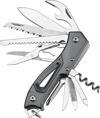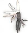 1. Bıçak (5,5cm) 2. Testere 3. Balık Pulu Soyucu 4. Balık İğnesi Tutucu 5. Makas 6. Anahtarlık Halkası 7. Tornavida Ucu (yıldız) 8. Tornavida Ucu (düz) 9. Törpü 10. Kontrol Halkası 11. Tırbişon 12. Gazoz Açacağı 13. Konserve Açacağı