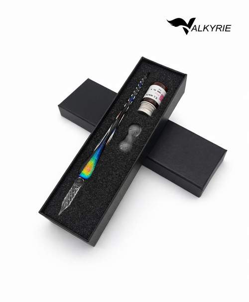 cam dip kalem, el yapımı cam kalem, renkli cam kalem, kaligrafi kalemi, hat kalemi, mürekkepli kalem seti, hediye kalem seti, koleksiyonluk kalem, Valkyrie cam kalem
