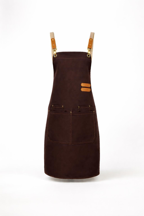 Valkyrie Suya Dayanıklı Barista Önlüğü Ayarlanabilir Askılı Cepli Mutfak Kafe Garson Önlüğü Kahverengi 74 cm