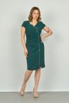 Detay: Drapeli, araboy, taş işlemeli, astarlı abiye elbise;