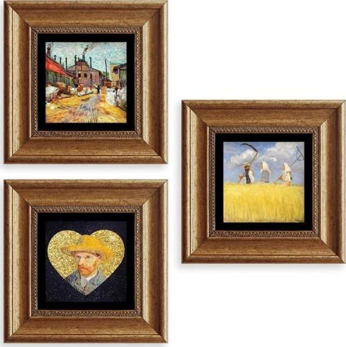 Van Gogh 3 Lü Set Çerçeveli Taş Tablo