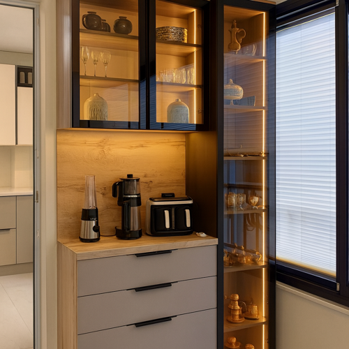 3 Modül olarak üretilir. Üst dolap, çekmeceler ve boy dolabı olarak. Gövde Rengi : Safir Meşe Çekmeceler Kum Beji Kapaklarda frenli menteşe kullanılmaktadır. Kapaklar kendinden metal kulpludur. Ledler uzaktan kumanda ile kontrol edilir. Ürün Ölçüleri Yükseklik 2.10 Cm Toplam Genişlik 120 Cm Derinlik 40 Cm Boy dolabı genişliği 40 cm Tezgah genişliği 80 cm Reflekte Cam Kapak Ledli Boy dolabının yönü değişebilir. İster sağda isterseniz de solda kullanabilirsiniz. 3 modül Kurulu olarak kargo yapılır. Led bağlantısı ve modüllerin bağlantısını yaptırmanız yeterlidir. Üreticisi olduğumuz için ölçü harici istediğiniz değişikliği yapabilirsiniz.