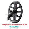 Minelab VANQUISH 340 modelinde standart olarak V10 (10”x7” - 25,5 cmx18 cm) DD arama başlığı vardır.