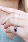 925 Ayar Gümüş Altın Kaplama Lacivert Oval Mineli Kalp Kolye - Image 1