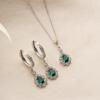 Vaoov 925 Ayar Gümüş Yeşil Damla Taşlı Set