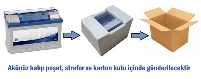 ESKİ AKÜNÜZÜ AYNI KARGO KUTUSU İLE ARAS KARGO VEYA PTT KARGO İLE ŞİRKETİMİZİN MÜŞTERİ NUMARASINI BELİRTEREK ÜCRETSİZ GÖNDEREBİLİRSİNİZ