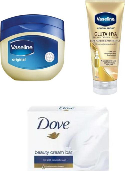 Vaseline 100Ml + Vaseline Gluta Hya Leke Karşıtı 200Ml +Dove Beauty Cream Katı Sabun 100G Cilt Bakım