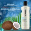 Zenginleştirilmiş Hindistan cevizi yağı formülü sayesinde saçı yumuşatır ve parlaklık sağlar.