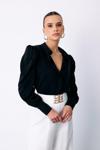 Gizli pat, vatkalı, düğme iliklemeli balon uzun kol, salaş klasik gömlek.