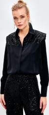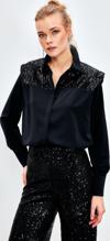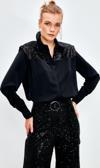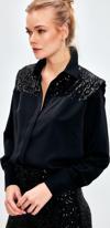 Ön gizli pat, kalça altı boy, vatkalı, payetli salaş gömlek.