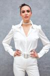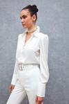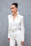 Ön düğme iliklemeli kapama, geniş manşetli uzun kol, vatkalı, saten gömlek.