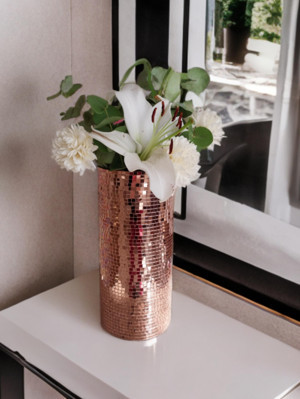 AYNALI CAM VAZO ROSE GOLD UZUN BOY