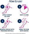 Veet® Professional 2 Dakikalık Krem, kolay dağıtım, uygulama ve çıkarma için spatulalı bir pompa şişesinde gelir. Kullanmak için, kremi spatulaya veya elinize pompalayın ve çıkarmak istediğiniz tüyleri tamamen kaplamak için eşit şekilde yayın. Tüylerin inatçılığına bağlı olarak kremi cildinizde 2 ila 6 dakika bekletin. 6 dakikayı aşmayın. Son olarak, kremi çıkarmak için cildinizi suyla durulayın ve kurulayın. Ürün etiketindeki talimatların tamamını okuyun ve uygulayın.