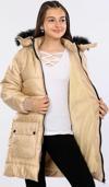 Go Veform İçi Kürklü Yağmur-Rüzgar Geçirmez Kapüşonlu Çocuk Mont Camel AVM152
