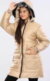 Kız Çocuk Yakası Şerit ve Üzeri Kare Dikiş Detaylı Cepli Çıtçıt Düğme Şişme Krem Mont - Image 1