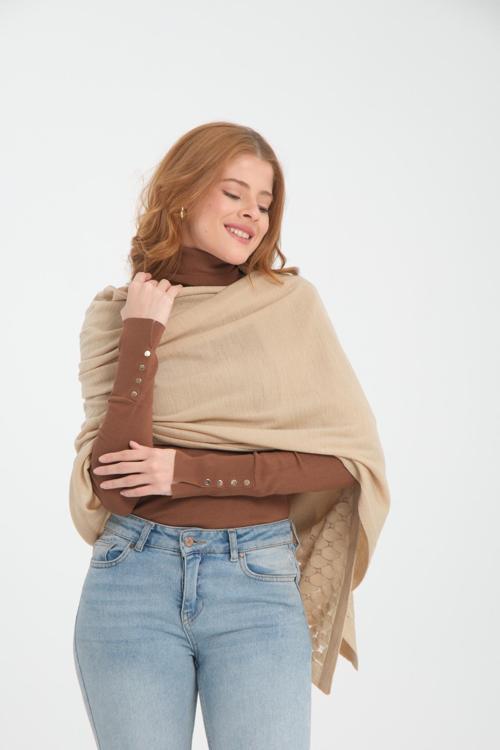 Vega Moda Tek Renk Ajur Desenli Omuz Şalı, Kenarı Ajur Desenli Şık Rahat Omuz Şalı, Triko Omuz Şalı, Kadın Şal