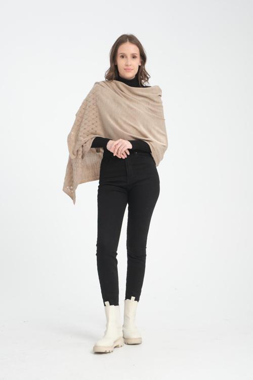 Ajur desenli tasarımı ile şıklığı ve rahatlığı bir arada sunan tek renkli omuz şalı, günlük kullanım için idealdir