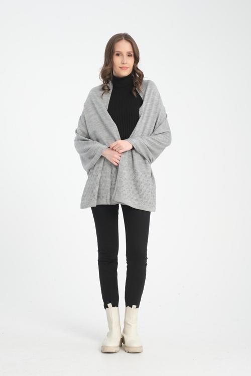 Vega Moda Tek Renk Ajur Desenli Omuz Şalı, Kenarı Ajur Desenli Şık Rahat Omuz Şalı, Triko Omuz Şalı, Kadın Şal