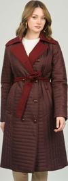 Kadın Belden Bağlamalı Uzun Kaban 3254 Bordo