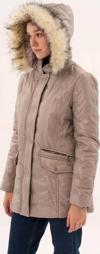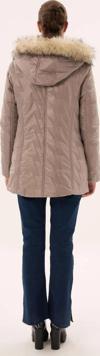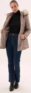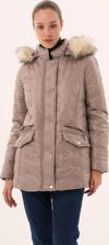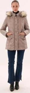 Kadın Büyük Beden Kürklü Kapüşonlu Kendinden Desenli Araboy Kapitone Mont 3478 Vizon