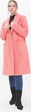 Kadın Rahat Kalıp Çıt Çıt Kapamalı Yünlü Peluş Kaban 3464 Somon