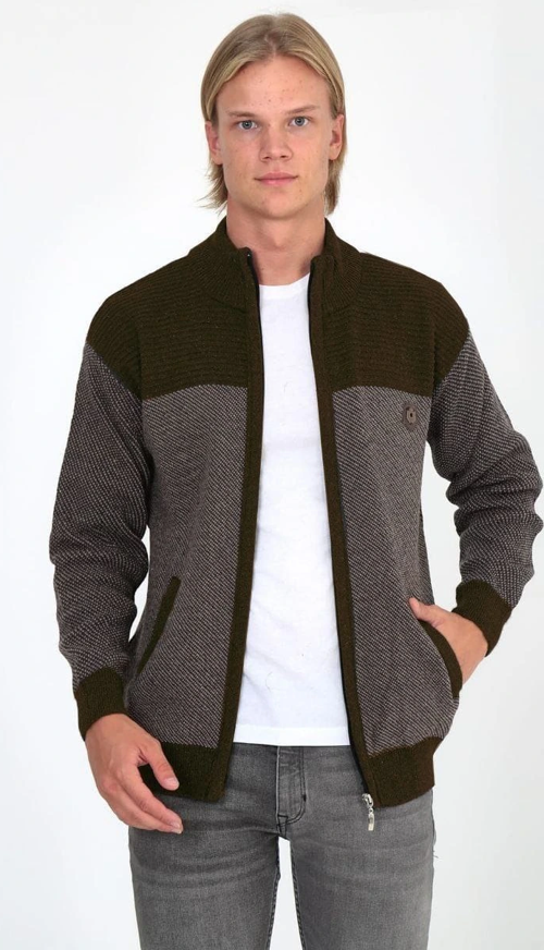 Velmora Fashion Velmora Premium Erkek Fermuarlı Triko Hırka Yüksek Yaka, Cepli, Günlük Şık Rahat Kalıp Triko - Kahve