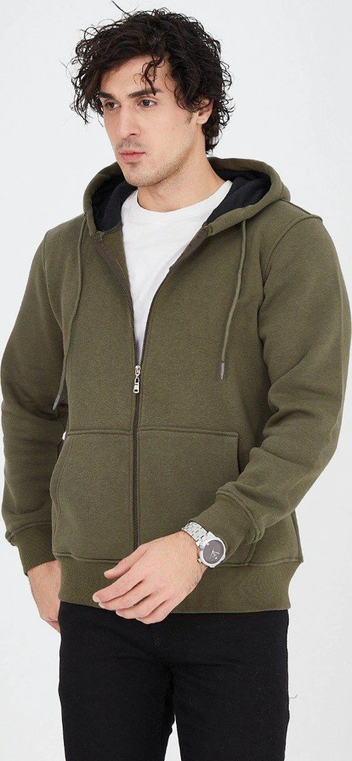 Velmora Premium Erkek Kapüşonlu Düz Fermuarlı Hırka - Yeşil