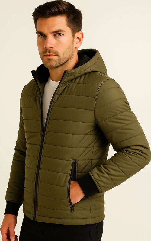 Velmora Premium Erkek Şişme Kapüşonlu Fermuarlı Mont Su itici Kapitone Astarlı Kumaş Cepli Kışlık Ra