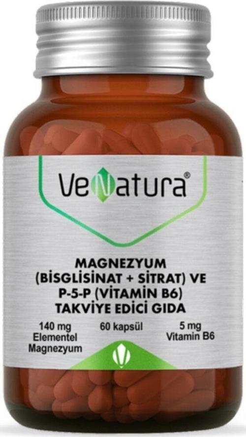 VeNatura Magnezyum (Bisglisinat+Sitrat) Ve P5P (Vitamin B6) 60 Kapsül