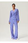 Romantik ve Eğlenceli Bir Yaz Şıklığı! Yazlık bürümcük kumaşıyla hafif ve rahat bir his sunan bu bluz, mor çiçek desenleriyle zarif bir görünüm sağlıyor.