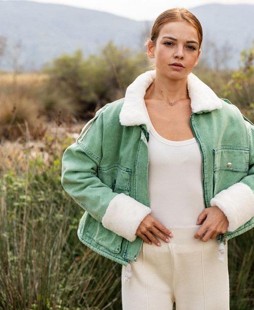 Şıklığı ve konforu bir araya getiren VerdeBlanco kürklü peluş yaka kot mont, yeşil rengiyle dikkat çekici bir görünüm sunuyor. Yüksek kaliteli denim kumaşından üretilmiş bu mont, soğuk havalarda hem sıcak tutar hem de stilinizi ön plana çıkarır. Yumuşak peluş yaka detayı, montun tasarımına lüks bir dokunuş eklerken, rahat kesimiyle günlük kullanım için ideal bir parça haline getirir. Ön düğme kapama ve cep detayları, hem şıklığı hem de fonksiyonelliği bir arada sunar.Bu kürklü peluş yaka kot mont, hem sıcak tutan hem de şık bir görünüm sunarak kış aylarında gardırobunuzun vazgeçilmez parçalarından biri olacak. Farklı kombinlerle rahatlıkla kullanılabilir.