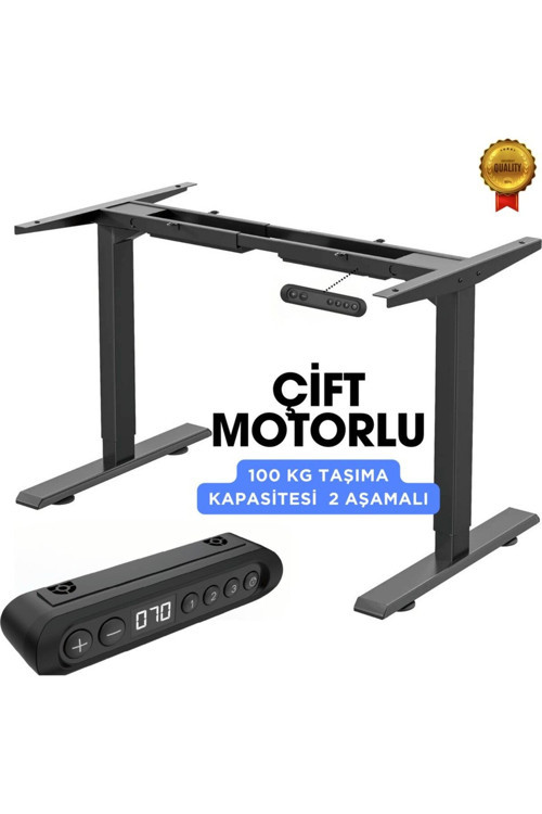 Vesamax Elektrikli Yüksekliği Ayarlanabilir Masa Ayağı Çift Motorlu, 2 Aşamalı, Siyah Tablasız