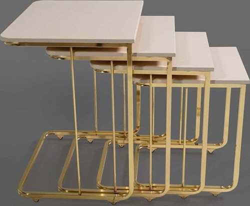 Tekerlekli Gold 4 Lü Zigon Sehpa - - Yan Sehpa