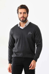 Velmora Fashion VF-Baskılı V Yaka Uzun Kol Dokuma Triko - Füme -