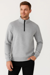 Velmora Fashion VF-Dik Yaka Sweatshirt Dik Yaka Yarım Fermuarlı 3 İplik Şardonlu Pamuk Kumaş - Gri -