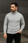 Velmora Fashion VF-Erkek Fitilli Triko Kazak 3'lÜ Set Gri Haki Siyah Regular Balıkcı Yaka Tam Boğazlı Triko Seti Modeli Kazak